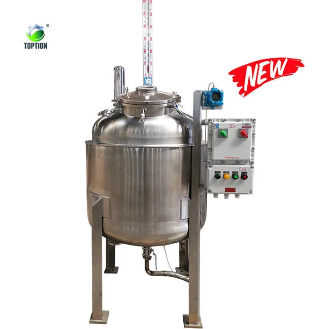 TOPTION الفولاذ المقاوم للصدأ خزان تخزين يدعم التخصيص المهنية، طبقة مزدوجة، طبقة واحدة، واسعة التخصيص نطاق سعة. للكحول قبل التجميد قبل استخراج الإيثانول الطرد المركزي، اختر طبقة مزدوجة، مطابقة الثلاجة لتحقيق تأثير ما قبل التجميد. للتخزين السائل بعد الترشيح، يتم اختيار خزان طبقة واحدة، والذي يستخدم أساسا للتخزين المؤقت قبل دخول المبخر لتحقيق الغرض من التغذية مستقرة ومستمرة.